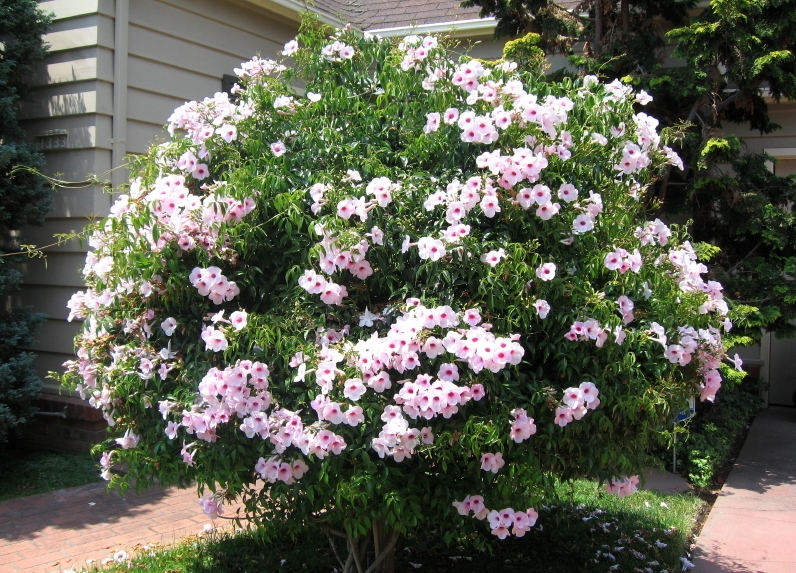 As flores da planta aparecem sempre em cachos, são bem grandes e possuem um formato tubular. Elas exalam um perfume muito gostoso, o que faz com que o ambiente onde elas são cultivadas fique bem agradável. Quanto à sua coloração, as flores podem ser brancas ou rosadas. Na parte onde podemos chamar de garganta da flor, elas são sempre mais escuras, sendo a maioria rosa escuro. Existe ainda uma espécie de trepadeira de arco chamada de Alba, onde sua coloração é completamente branca.