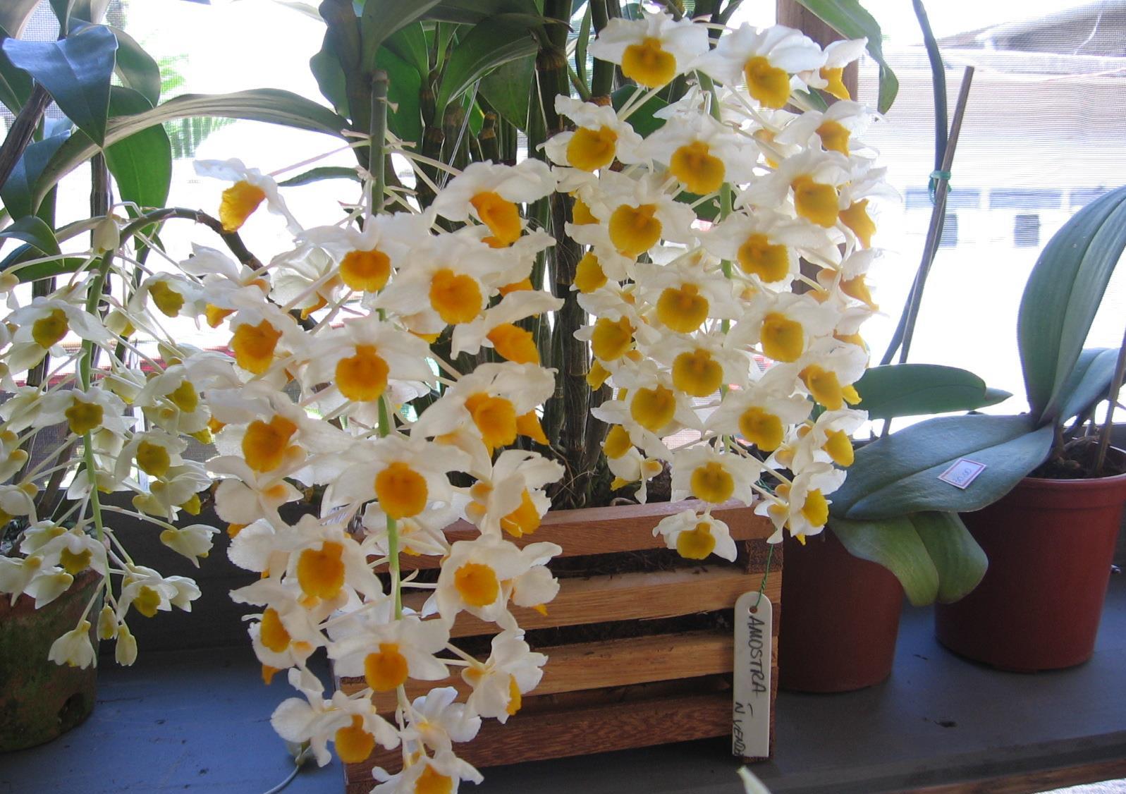 A orquídea Dendrobium thyrsiflorum, de origem do sudoeste asiático, chama atenção pela abundante quantidade de flores e pelo seu rápido crescimento e entouceiramento.