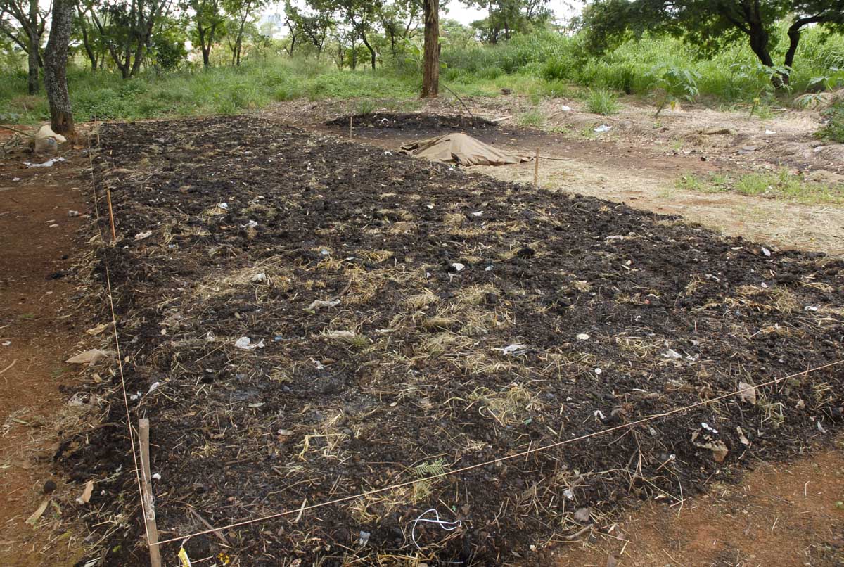 * Pelo menos duas vezes por semana, com a ajuda de uma forquilha, veja se o composto está pronto. Depois de decomposto ele deverá assumir cor mais escura do que o solo.