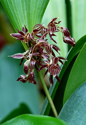 As inflorescências despontam acima da folhagem, em rácemos eretos, com flores que se abrem da base em direção ao ápice.