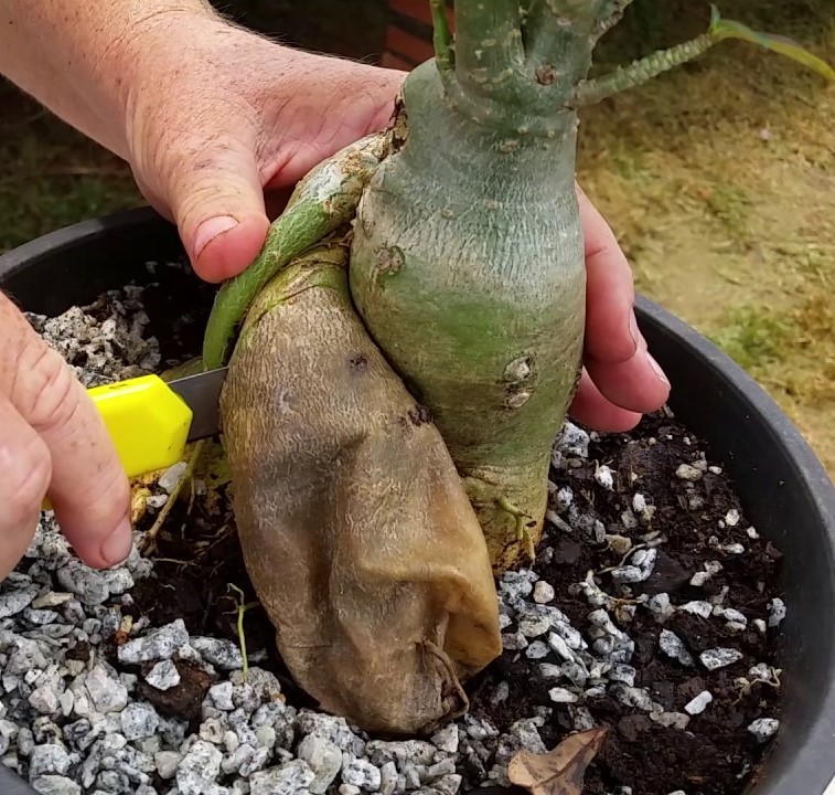 Os cuidados na remoção da podridão no caudex da Rosa-do-deserto